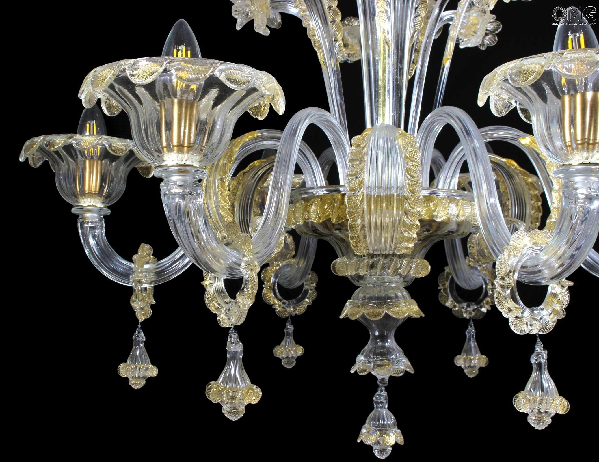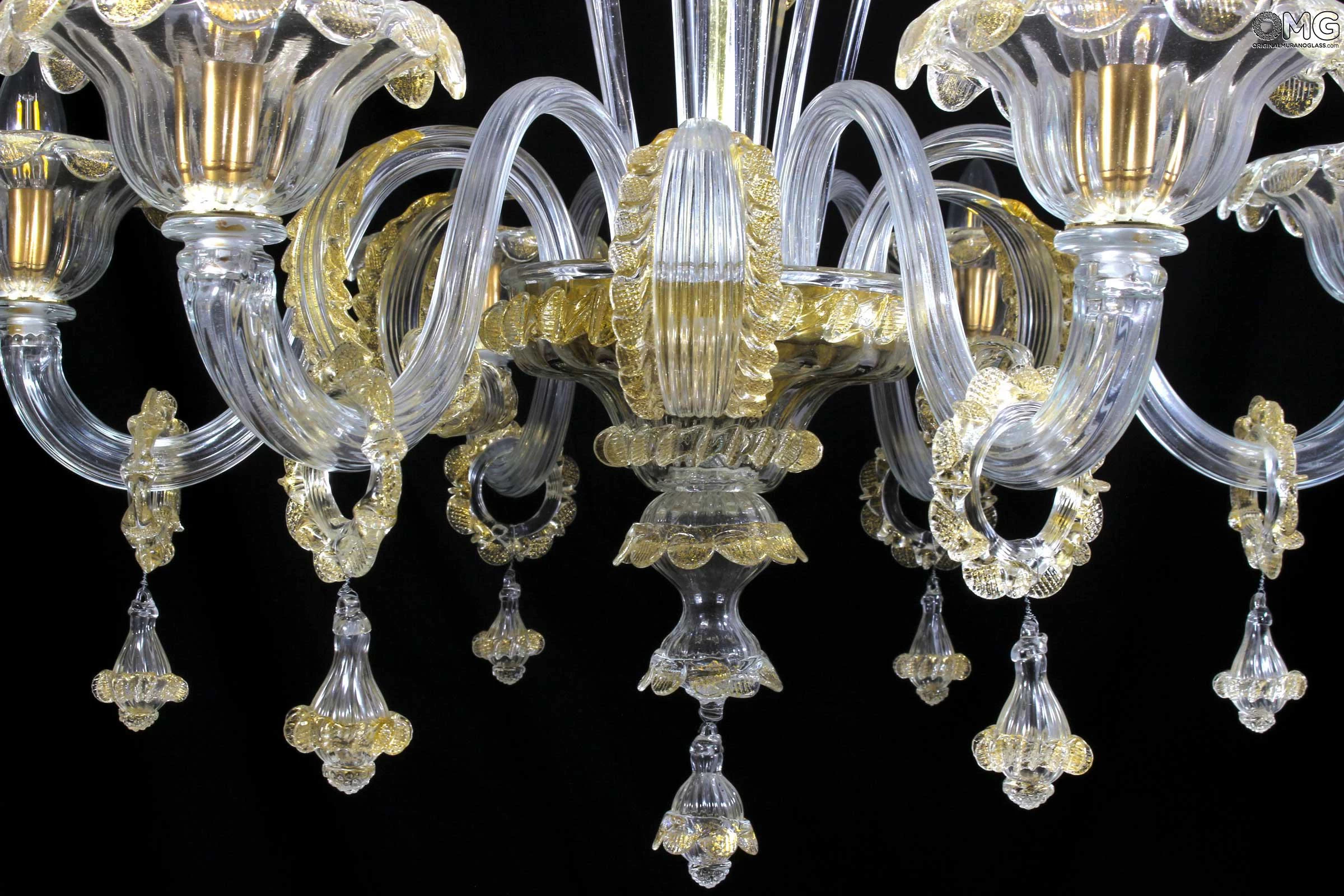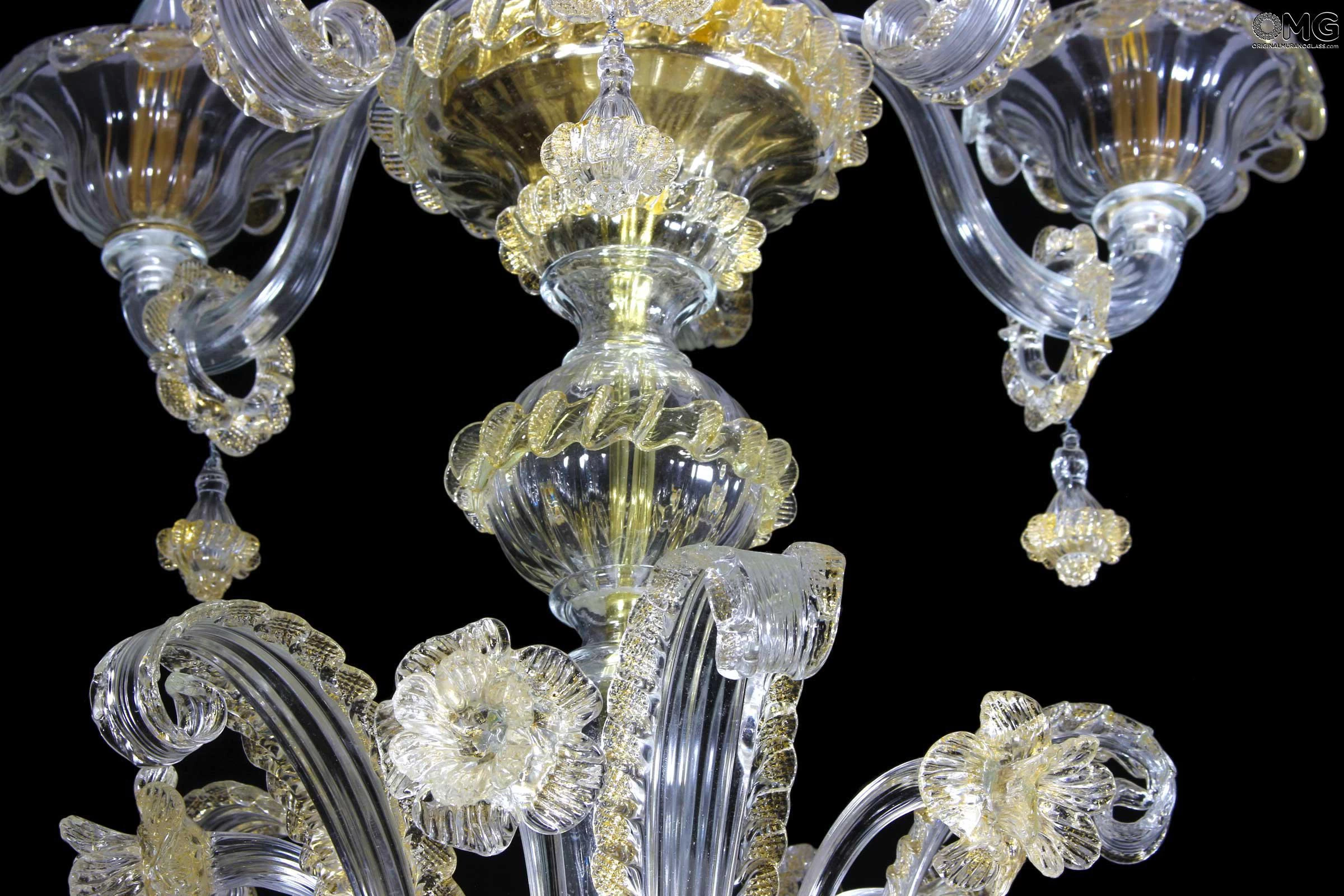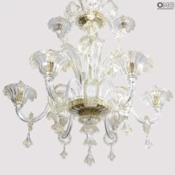 Chandelier handmade according with the old Murano glass tradition, handcrafted in blown glass.