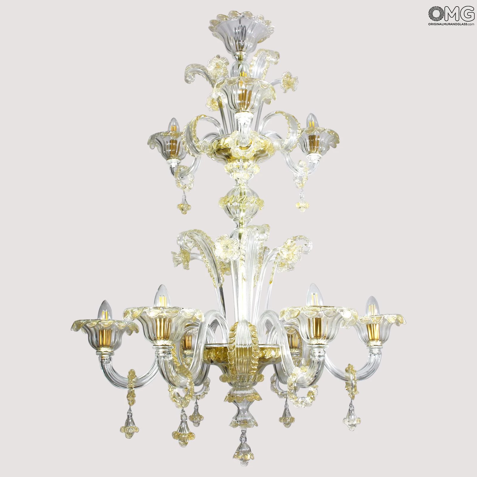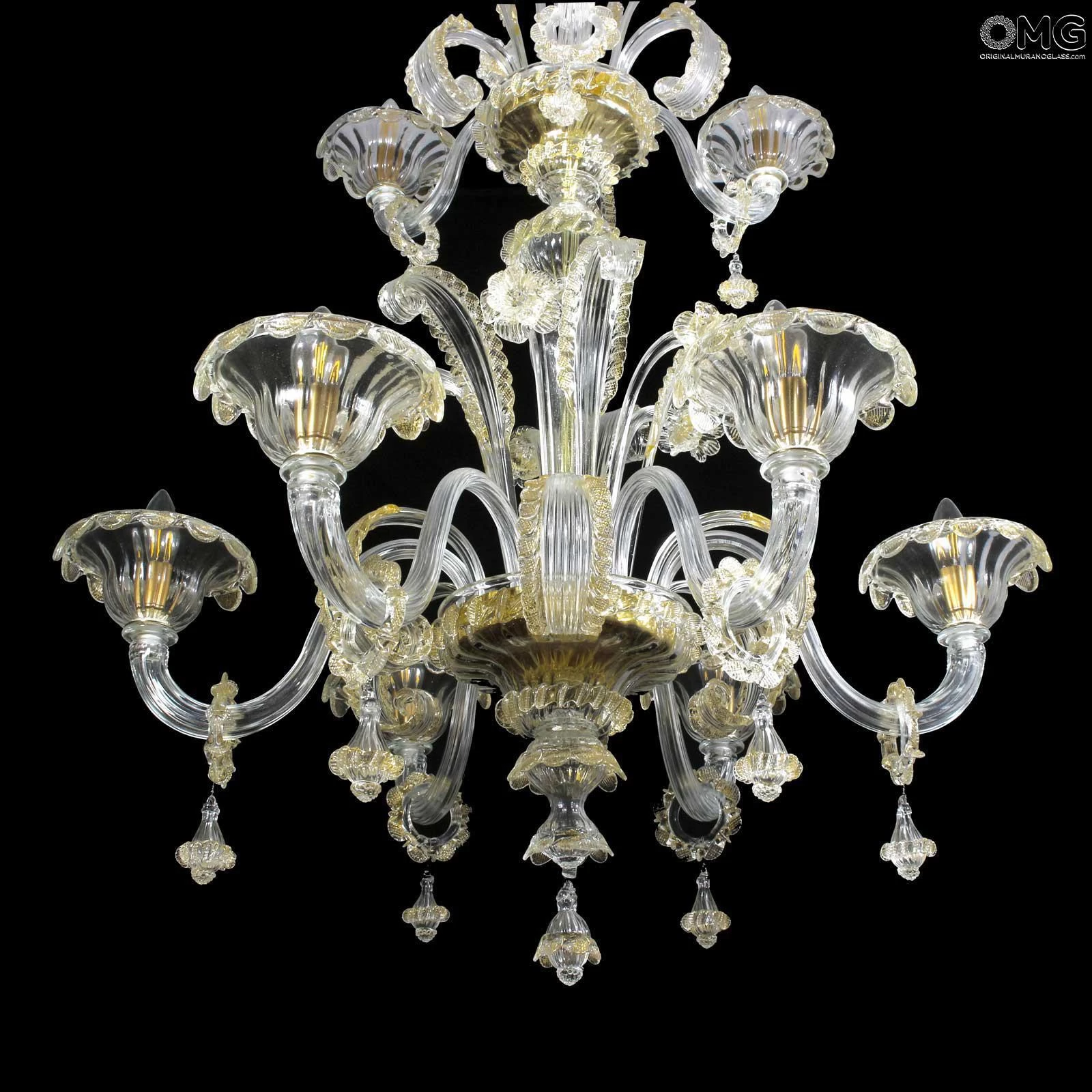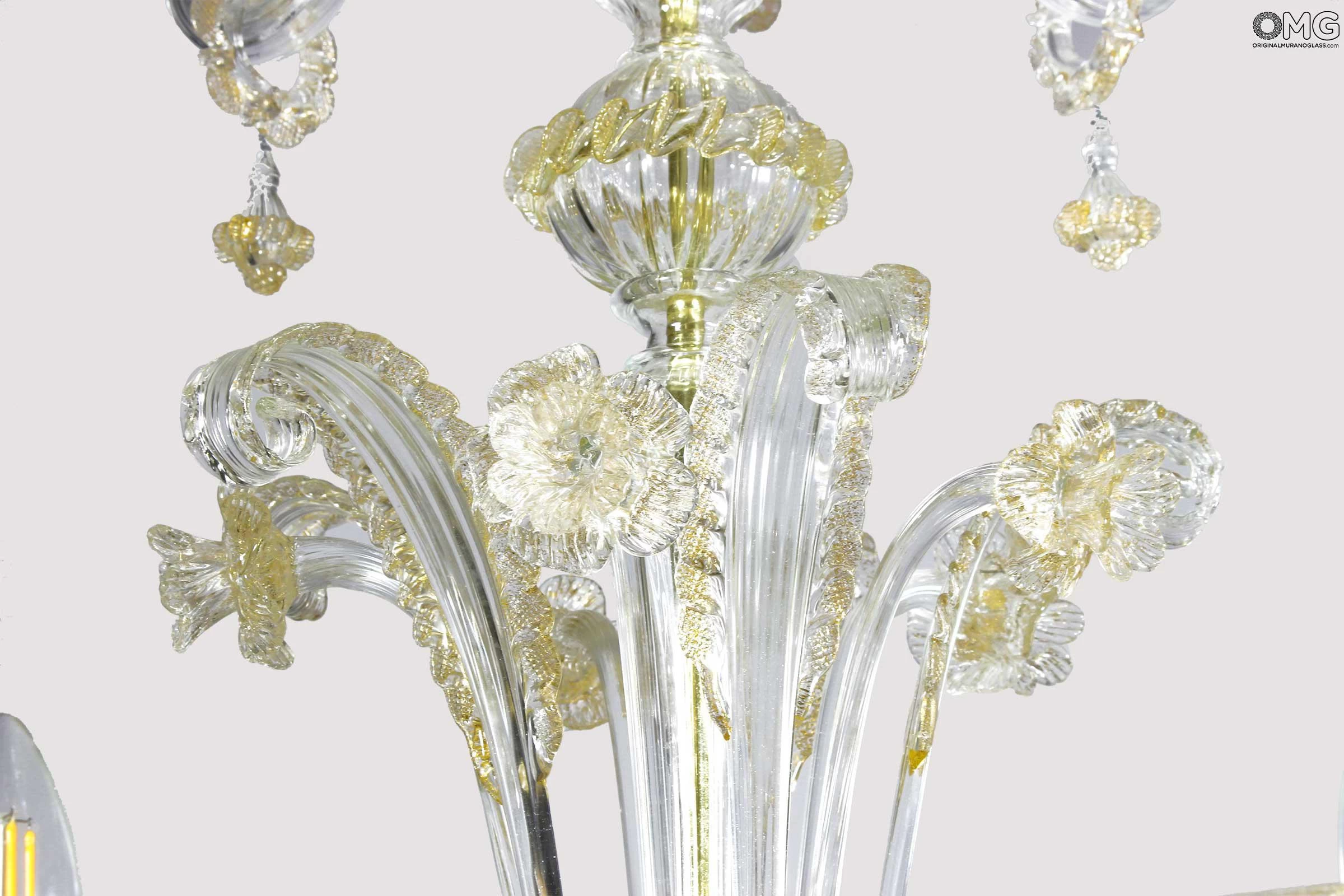 Chandelier handmade according with the old Murano glass tradition, handcrafted in blown glass.