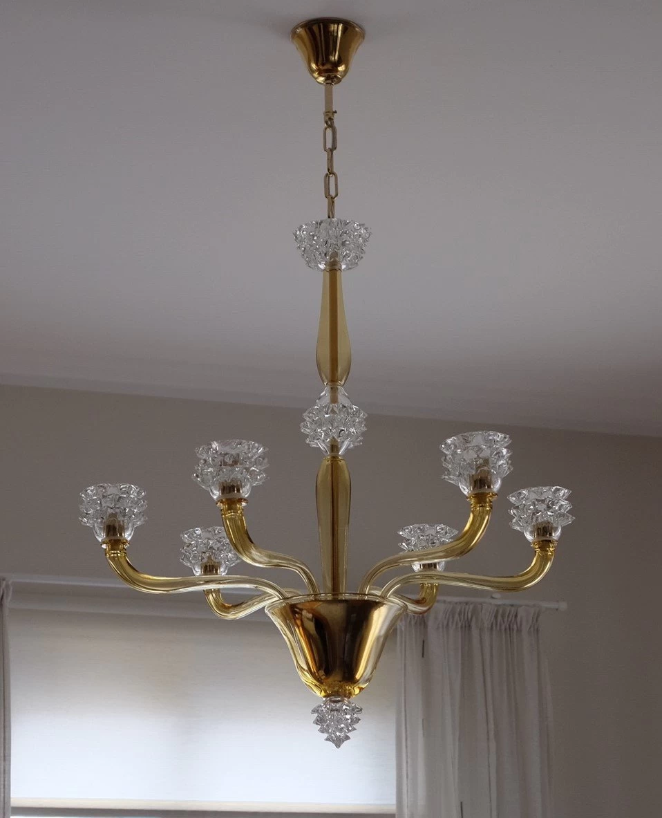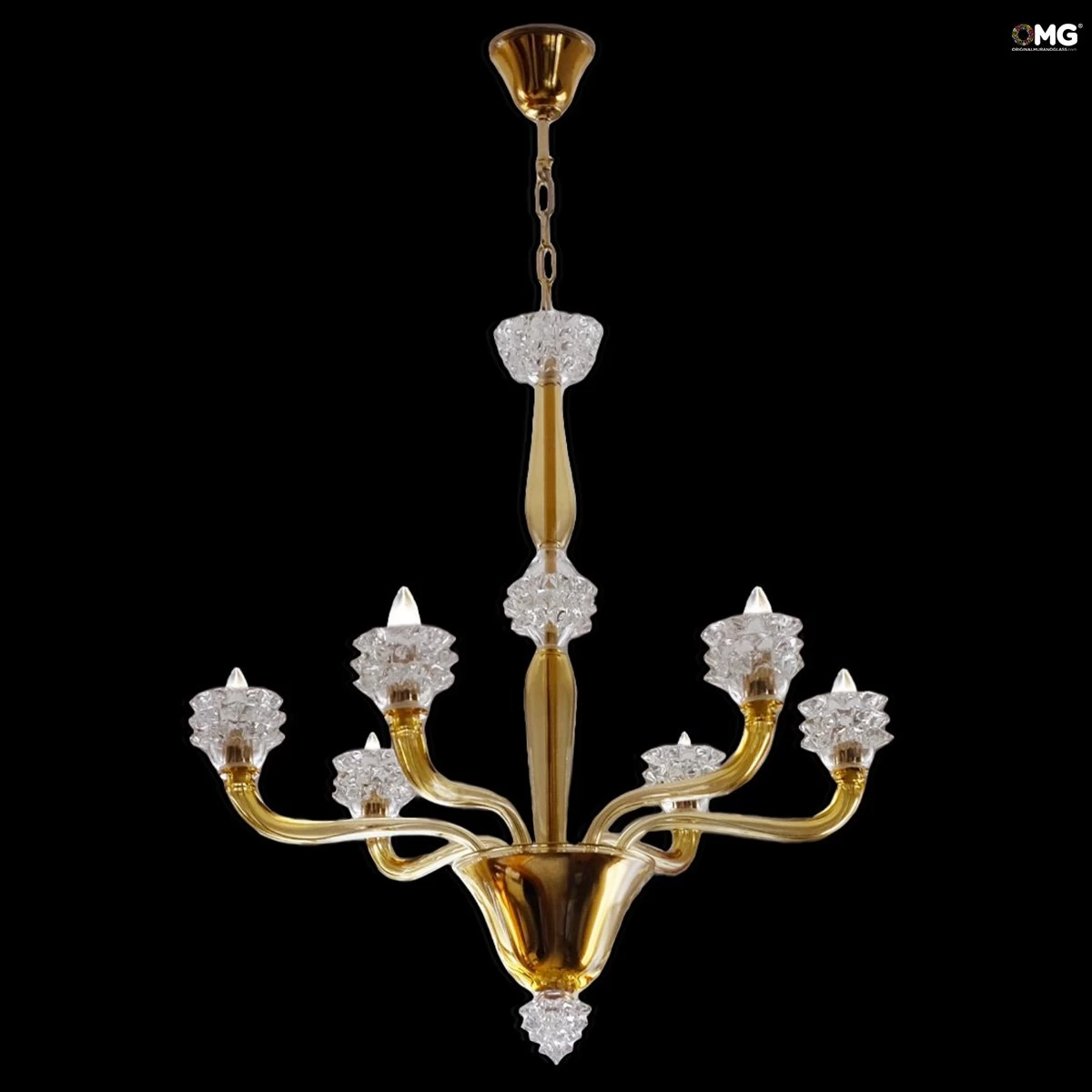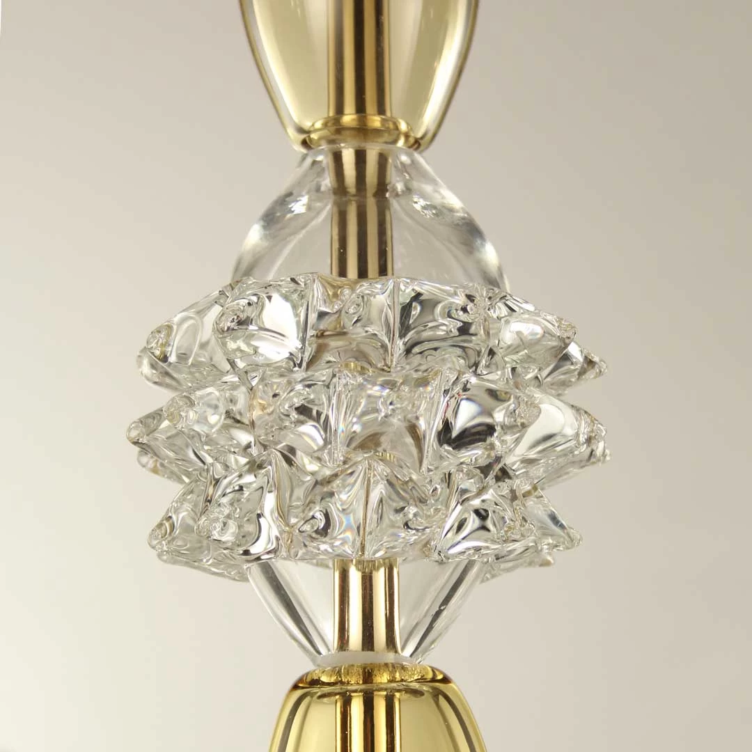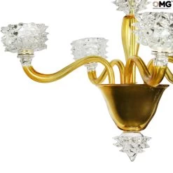 Venetian glass Chandelier, gold colored with crystal details.Â