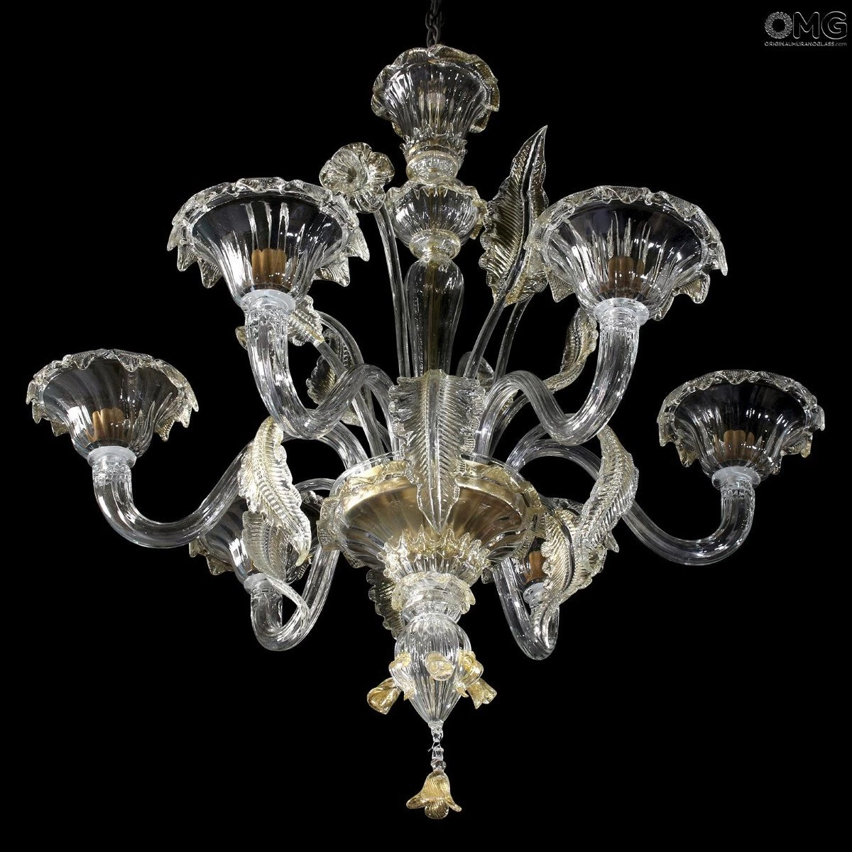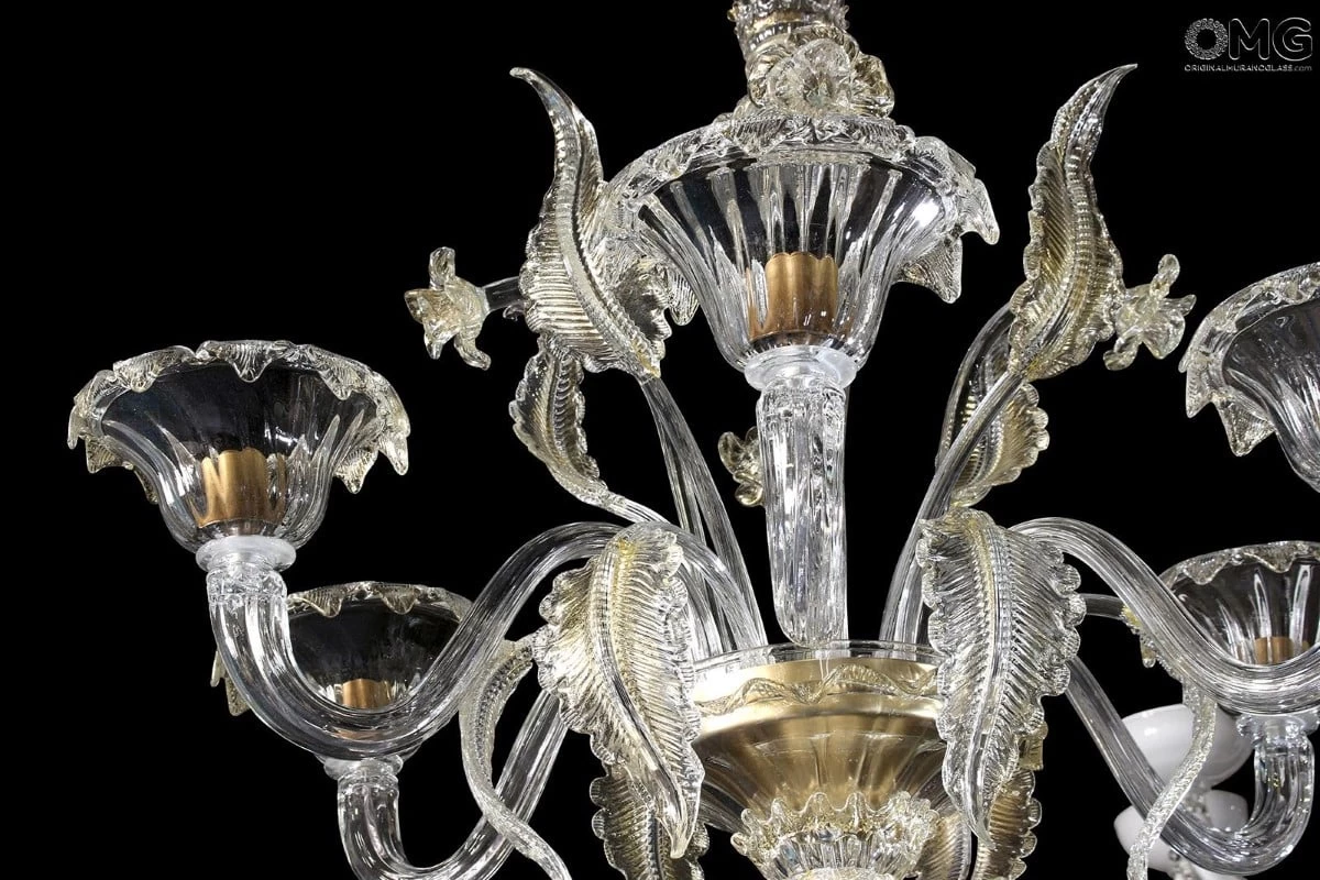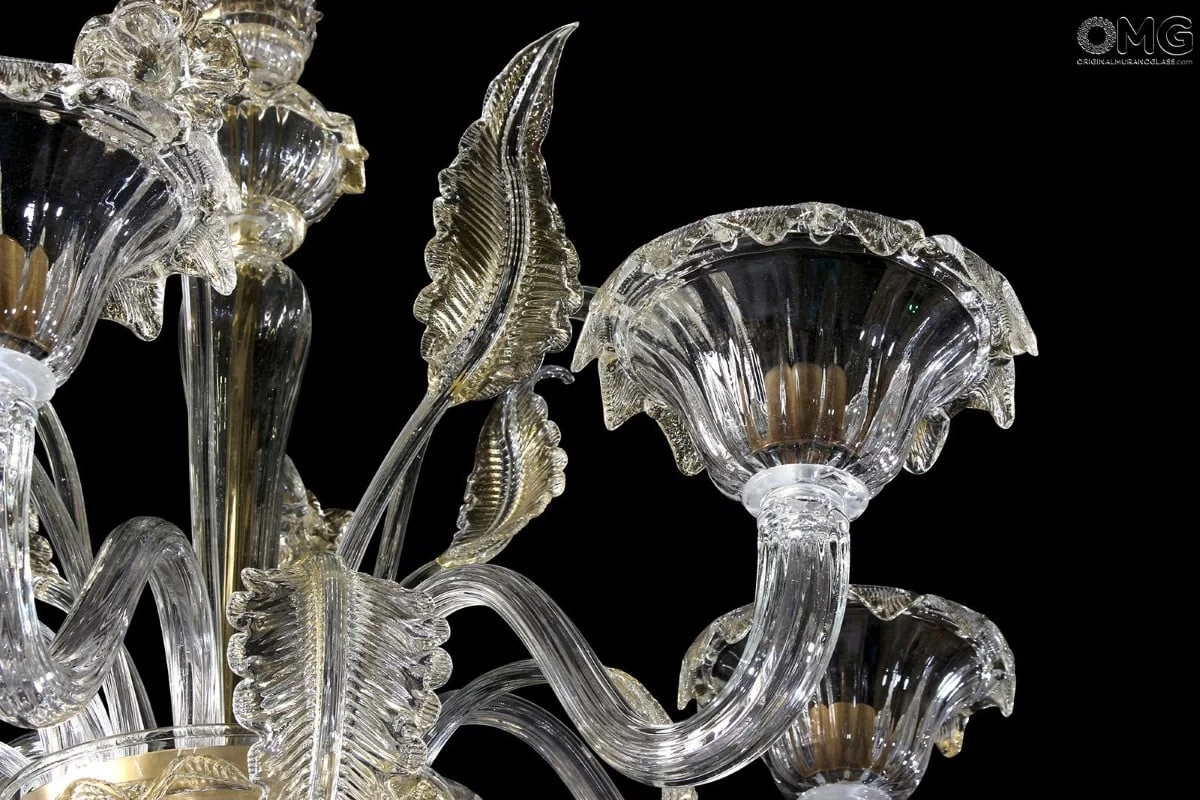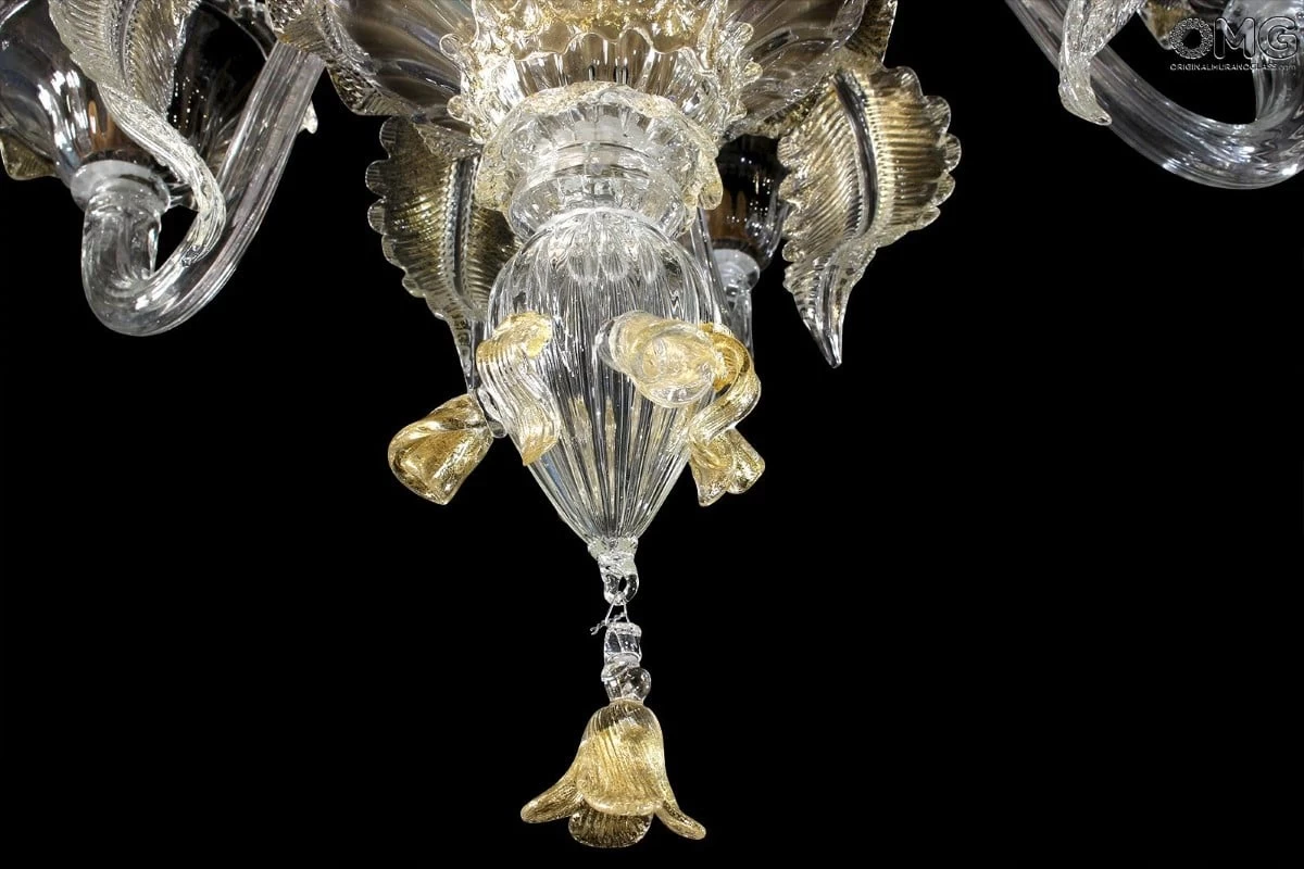 Chandelier handmade according with the old Murano glass tradition, handcrafted in blown glass.