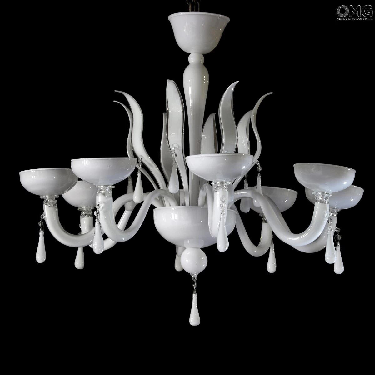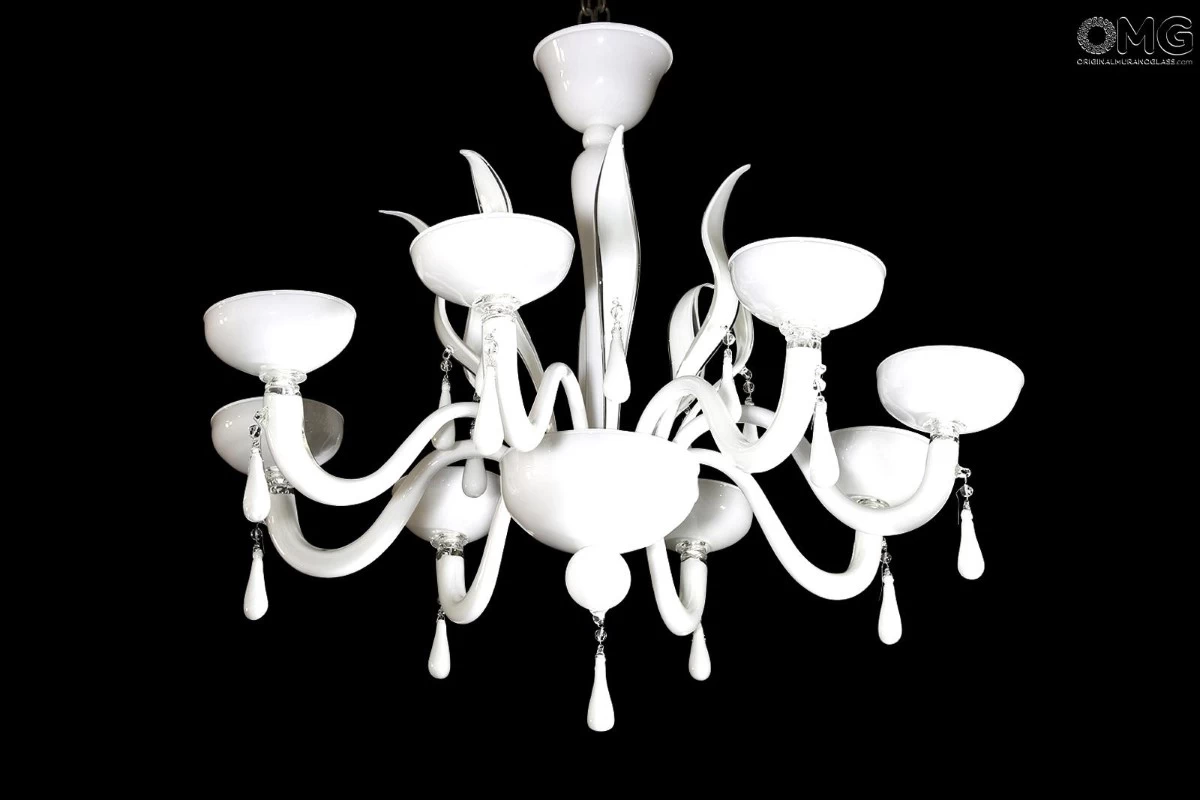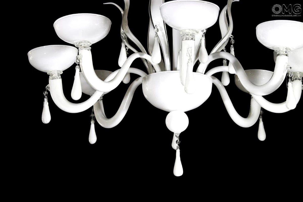 Venetian Chandelier in Original Murano Glass, white color and nice pendants.