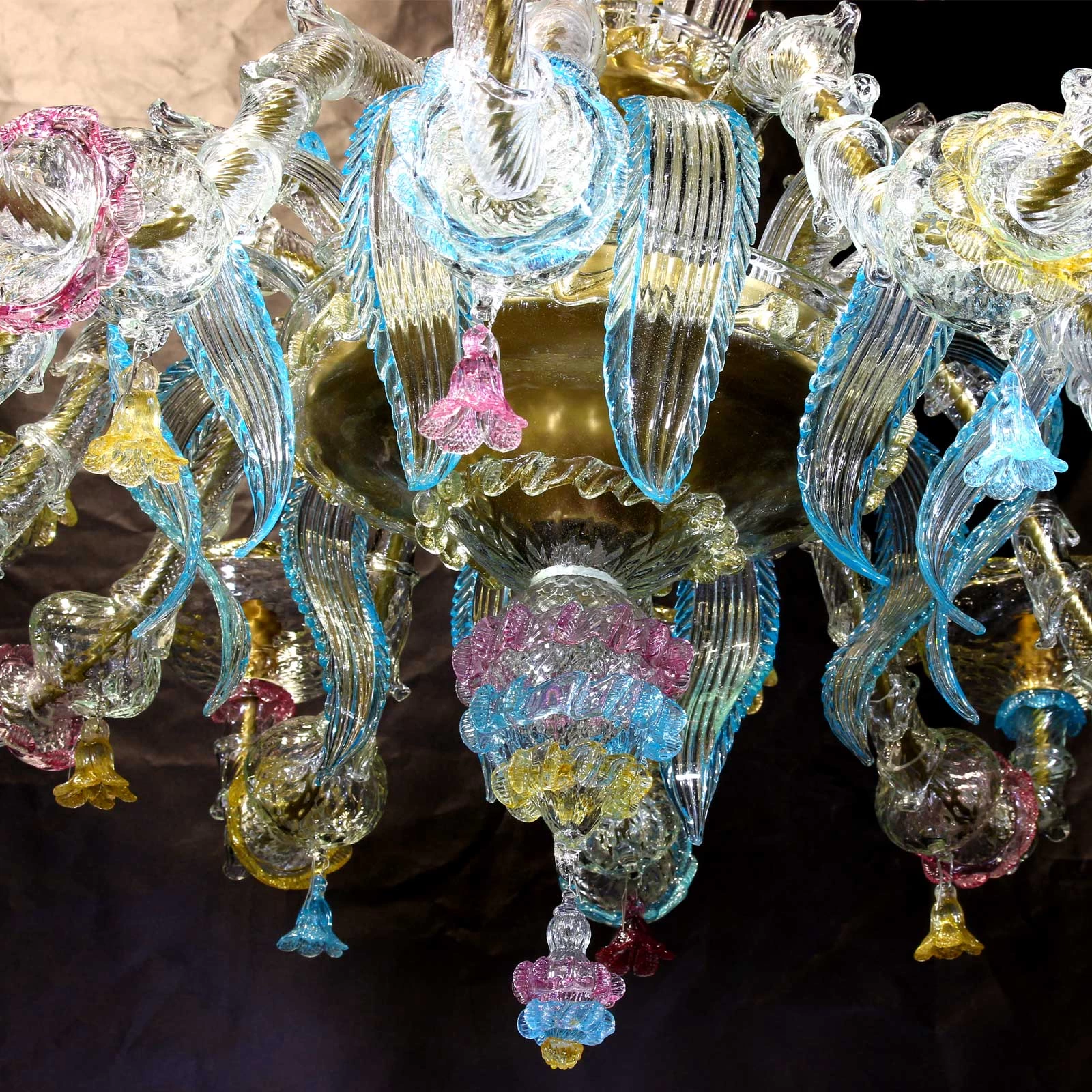 Chandelier handmade according with the old Murano glass tradition, handcrafted in blown glass.