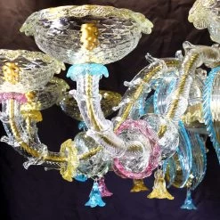 Chandelier Venetian glass with rezzonico arms, multicolors and pure gold 24kt details.