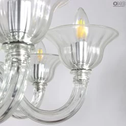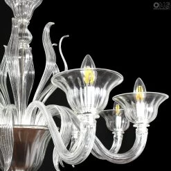 Chandelier handmade according with the old Murano glass tradition, handcrafted in blown glass.