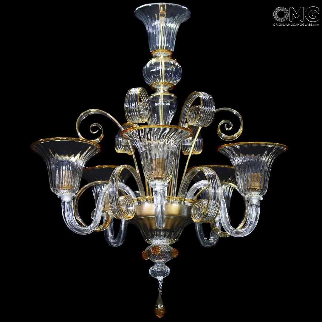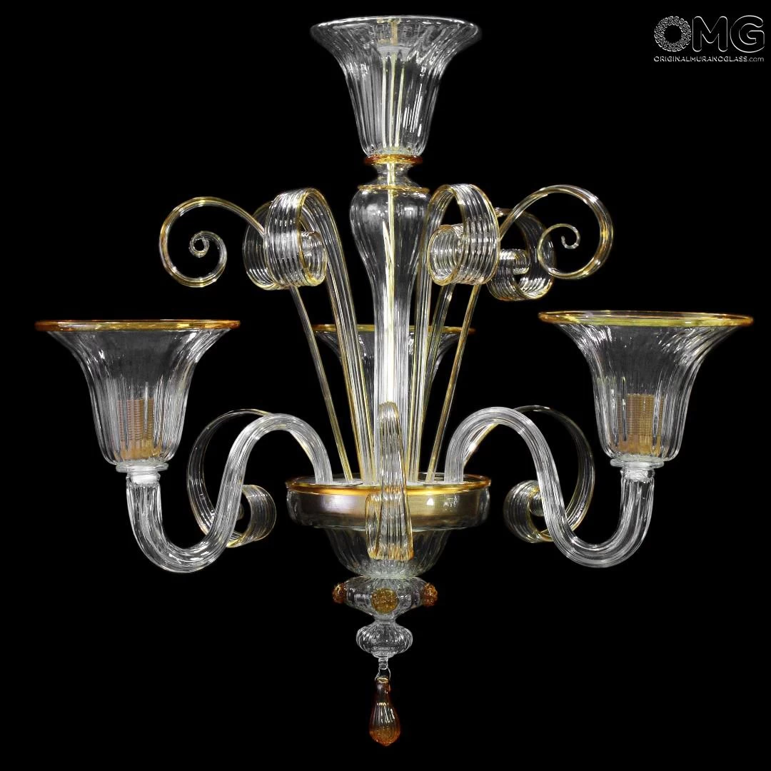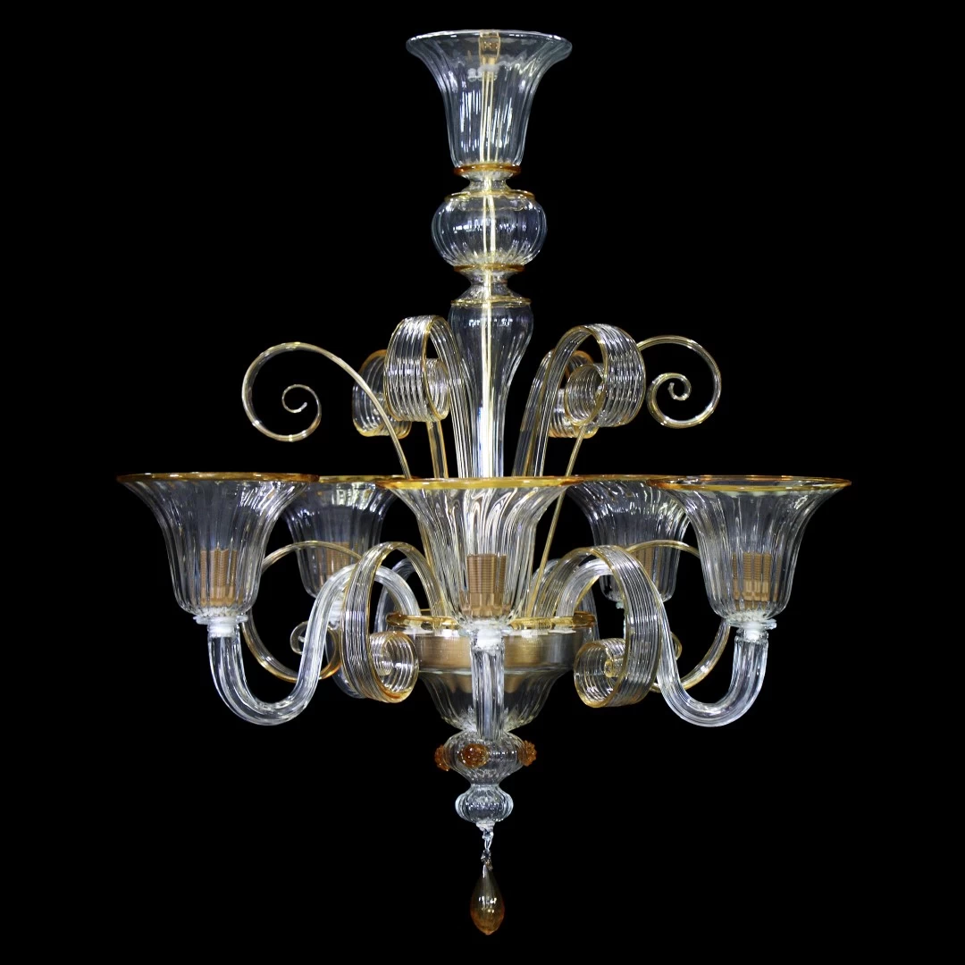 Chandelier in Venetian art glass color pure crystal and amber.Â