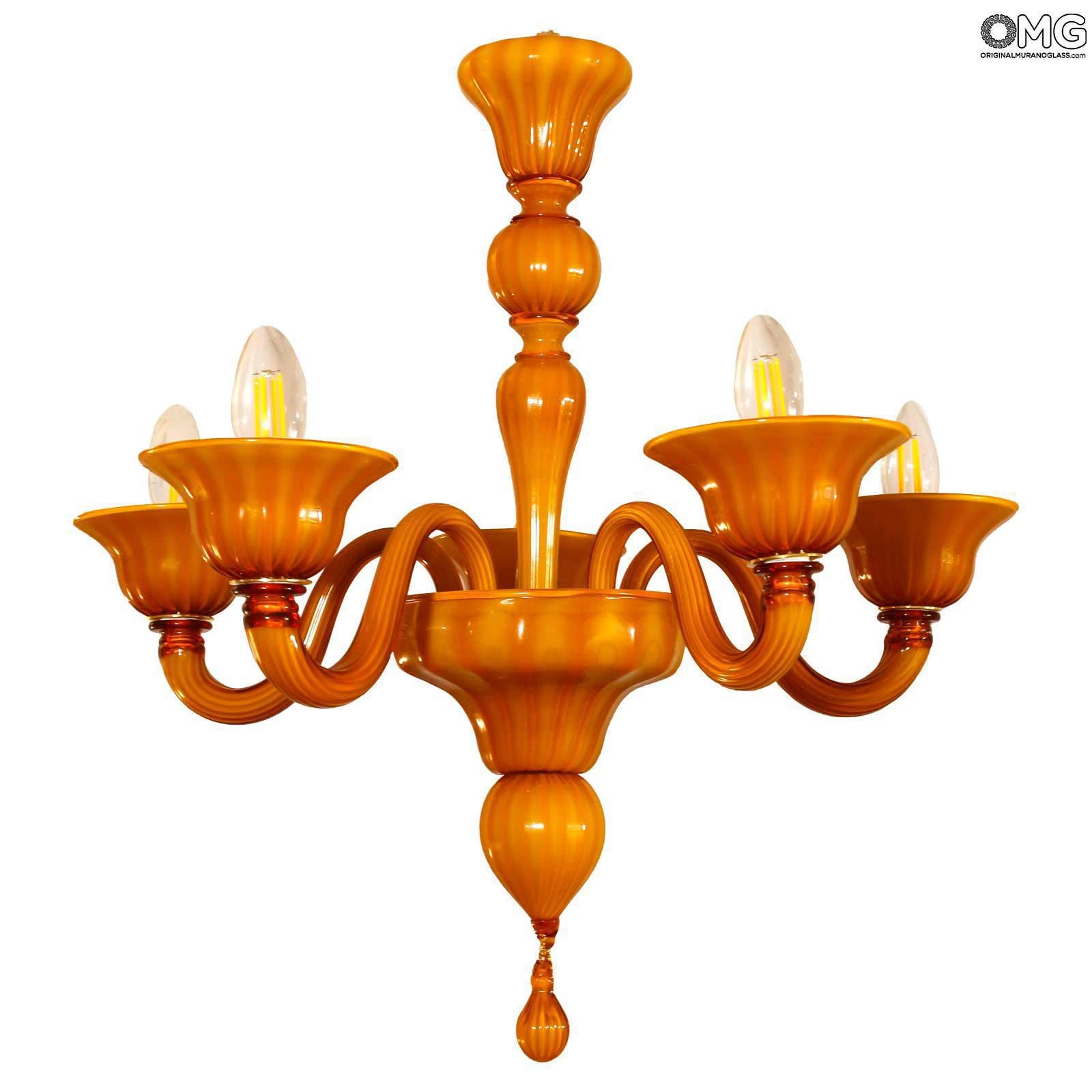 Chandelier handmade according with the old Murano glass tradition, handcrafted in blown glass.