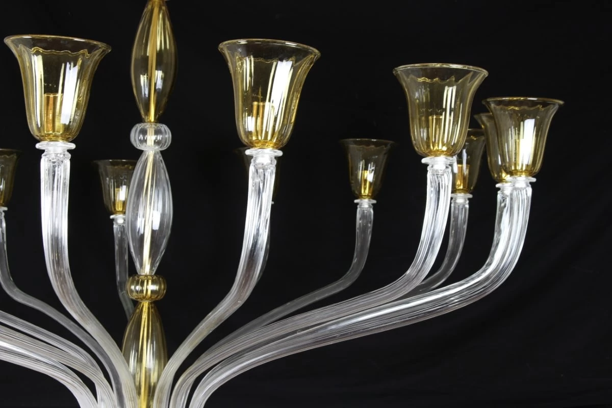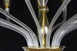 Exclusive venetian chandelier with clear glass crystall and amber glass color.