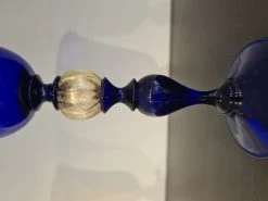 Blown glass goblet in blue glass. Made with the technique of worm glass modellation. Perfect details.