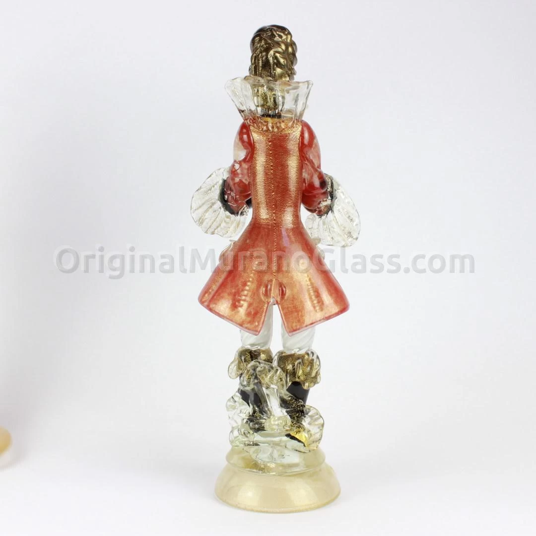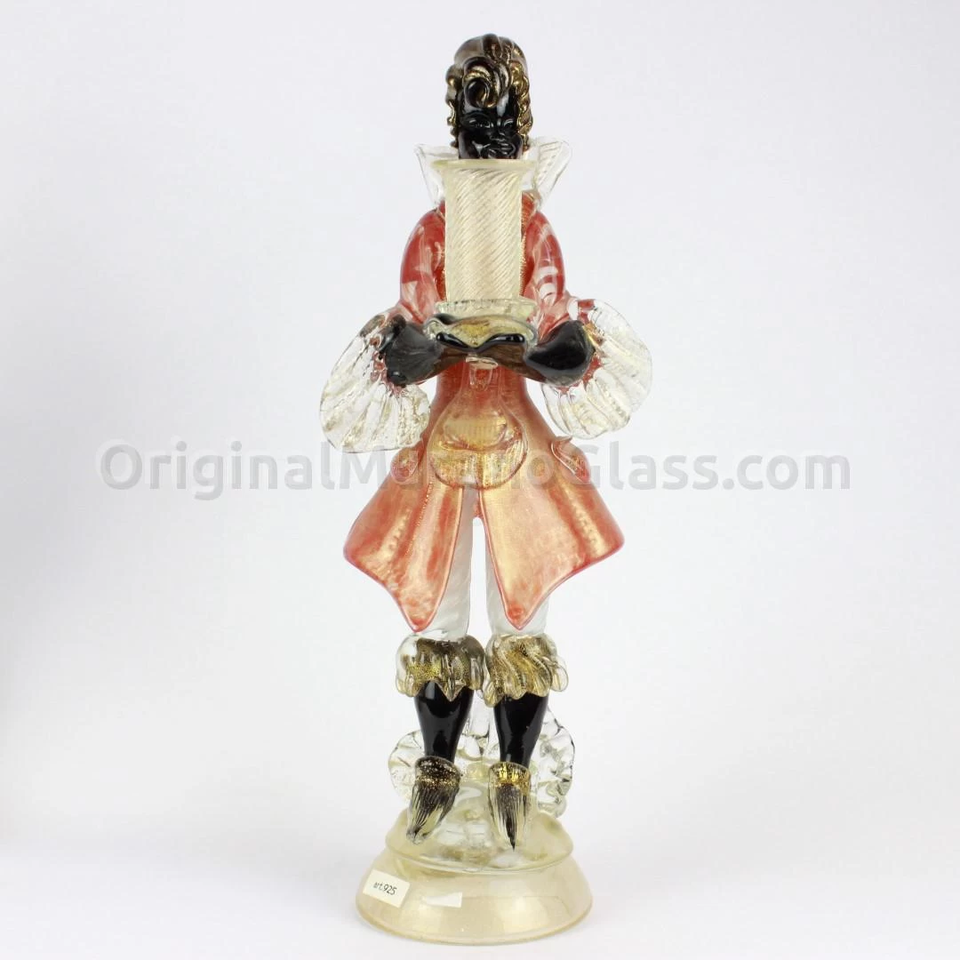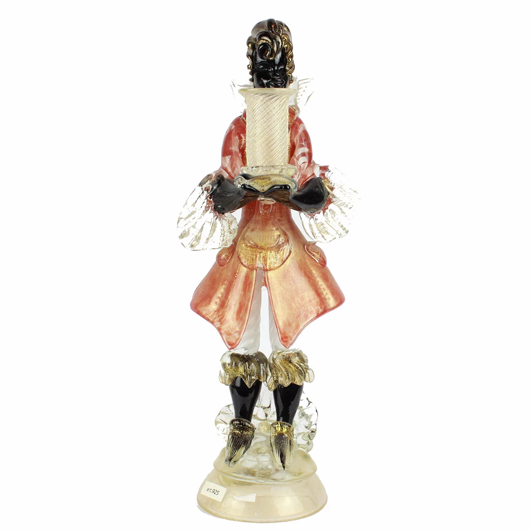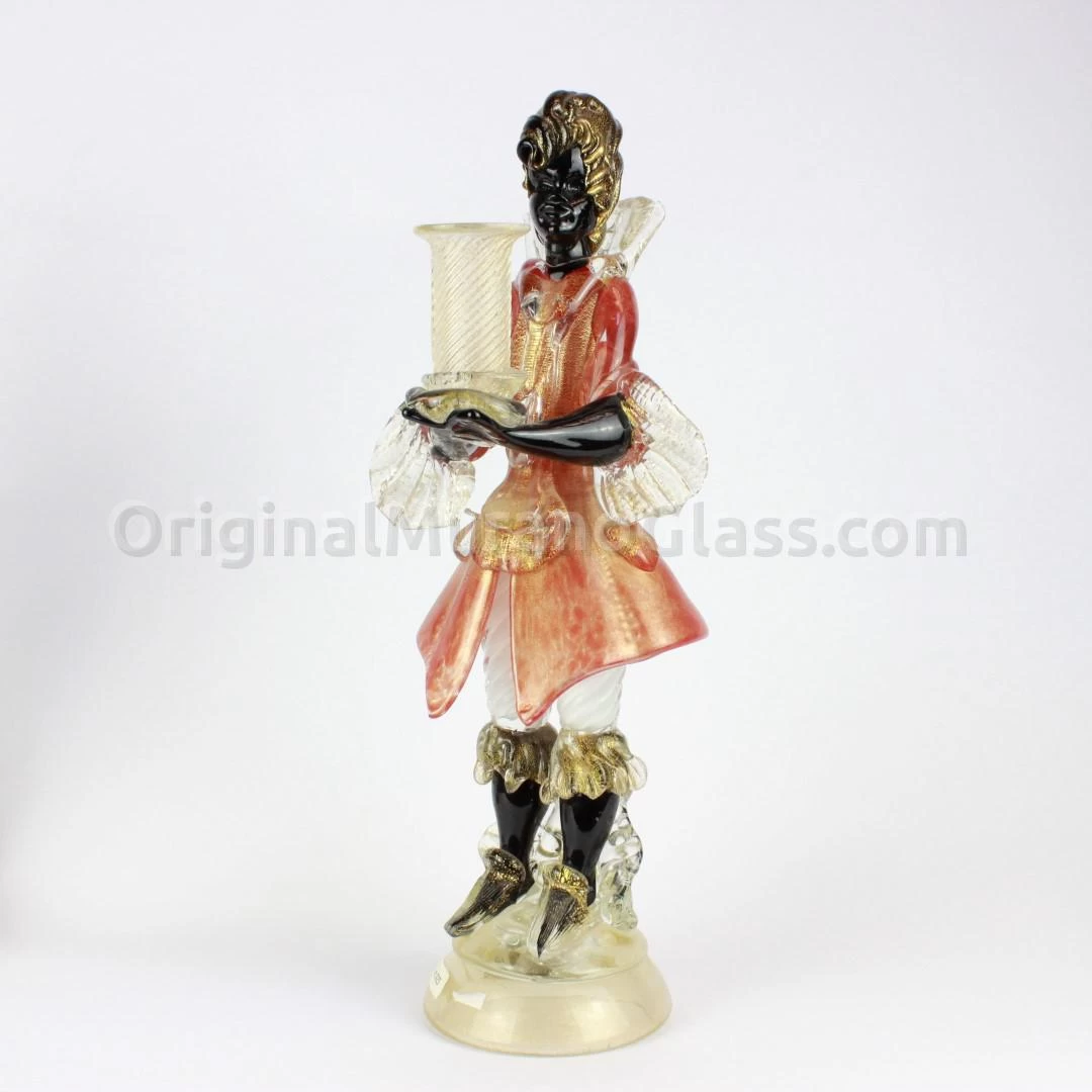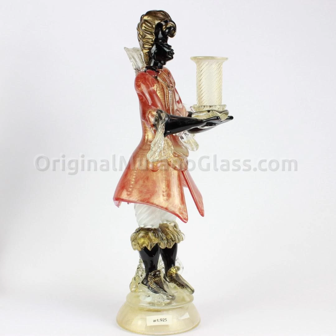 Venetian Moor standing red with gold decoration. Sculpture worked with the technique of modeling hot. Much attention to detail and rich of Venetian style. The statue is signed with cold engraving by the master.