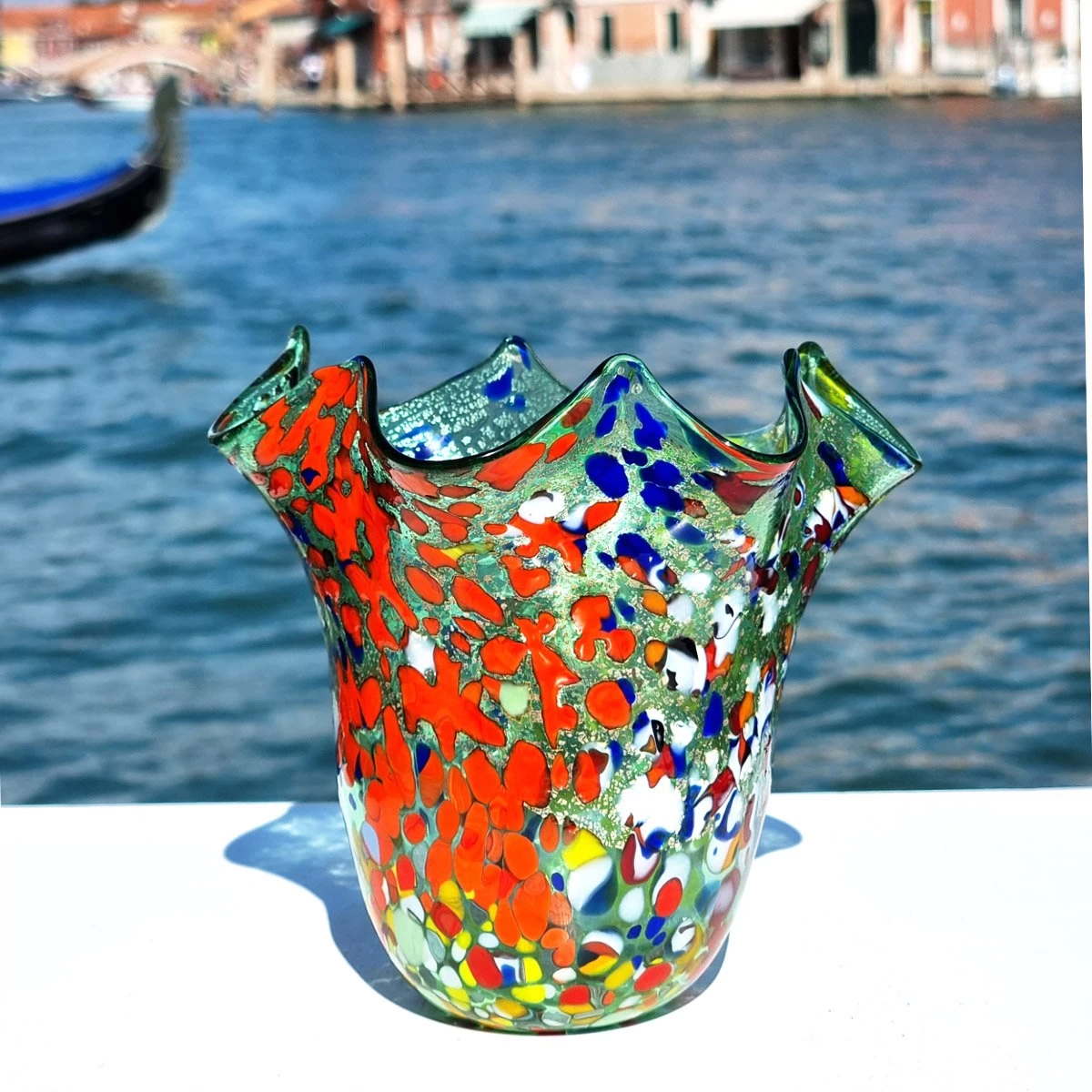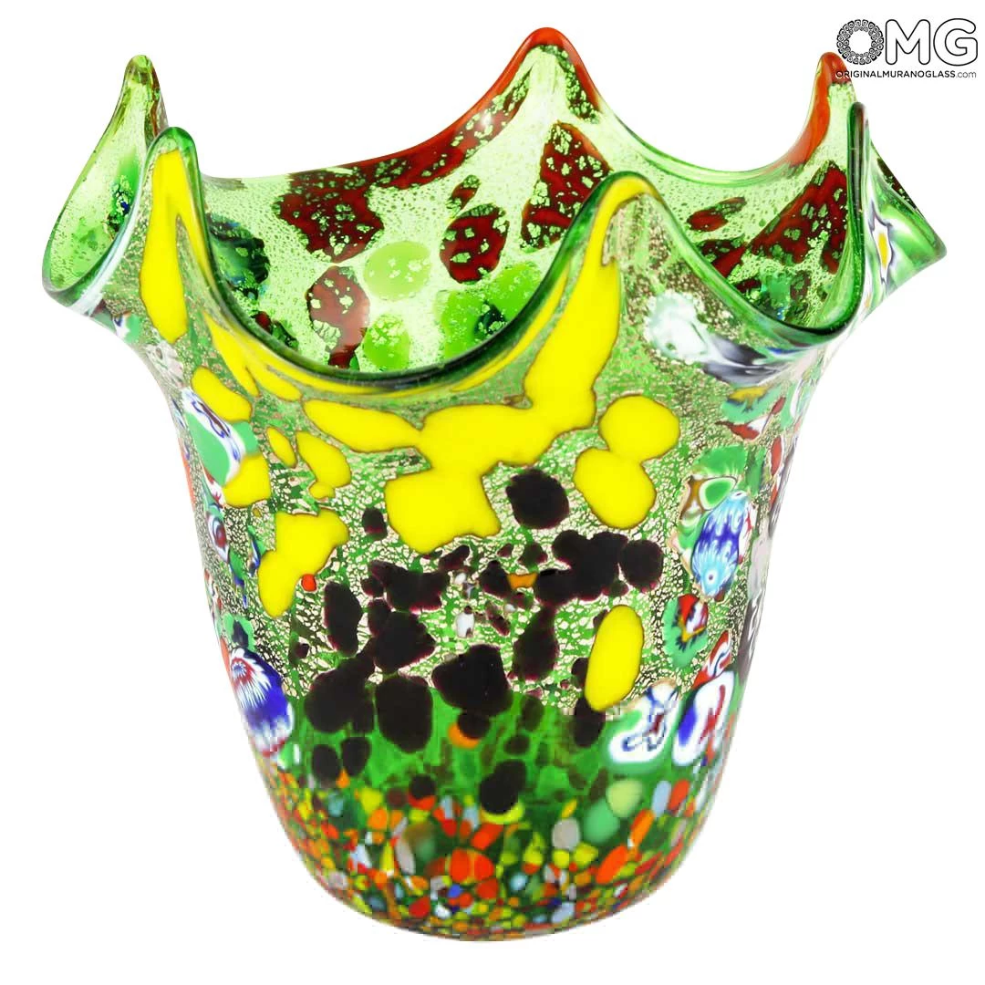 Vase made with the technique of glass blowing and  murrina decoration. The vase is signed by the master Rossi.