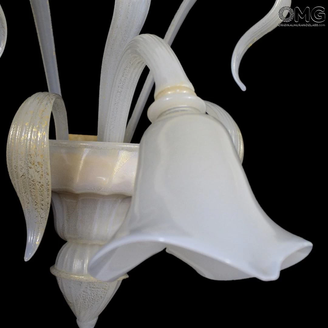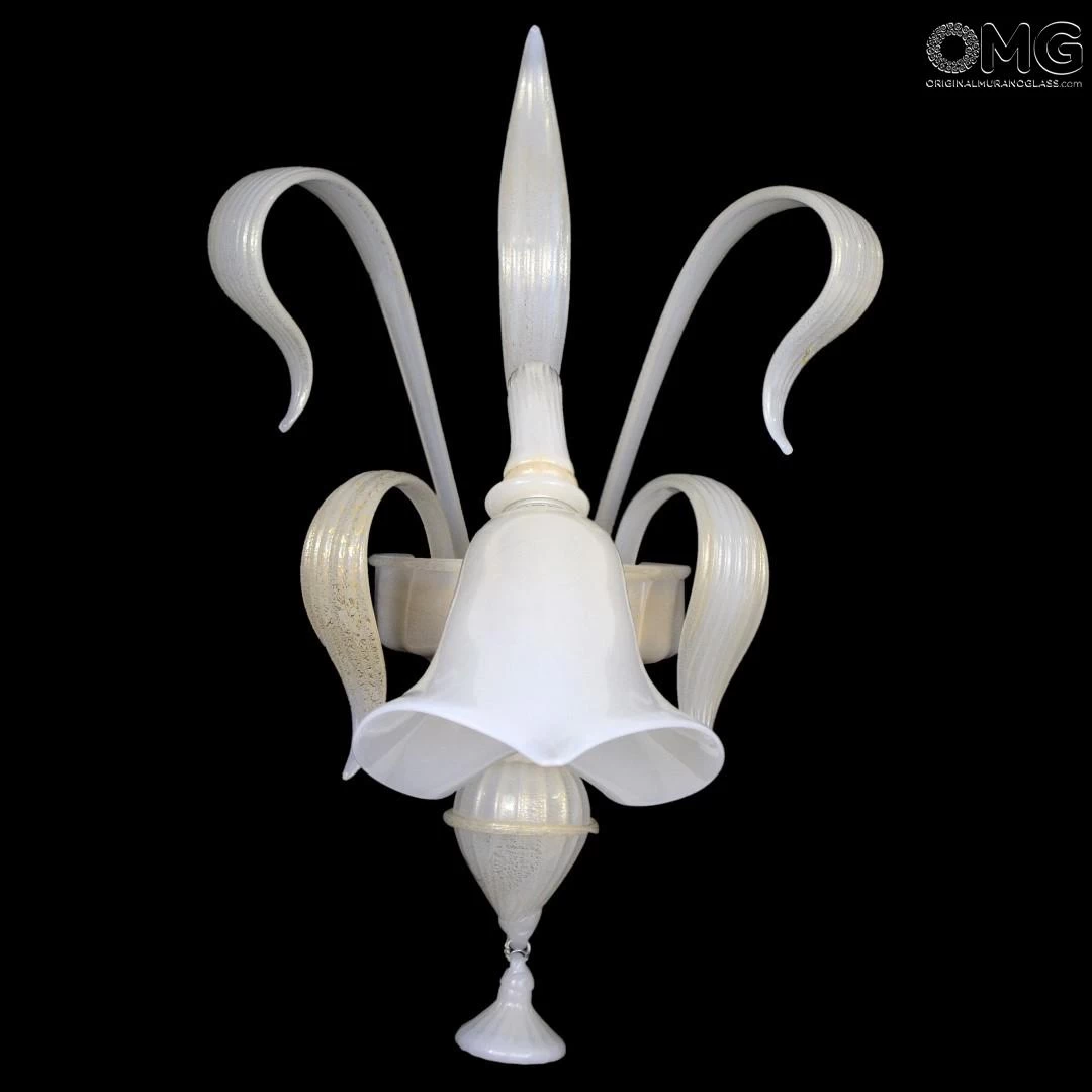 Venetian glass sconces 1 light-colored white silk and gold.Â