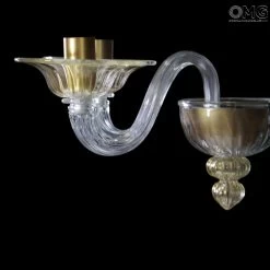 Wall lamp 2 lights artistic glass color transparent cups holder and end entirely flecked in gold.